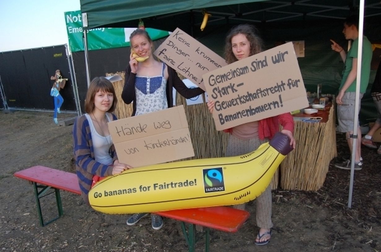 Viele Festivalbesucher nutzten auch die Möglichkeit, ein Foto mit einer Forderung für die Rechte der Bananenarbeiter oder den Fairen Handel aufzunehmen, das später auf Facebook veröffentlicht wurde, sodass viele Menschen ihre Forderung sehen konnten.