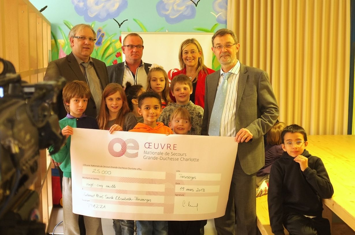 Am 19. März 2013 hat Frau Claudine Lorang, conseillère de direction der Oeuvre Nationale de Secours Grande-Duchesse Charlotte, einen Scheck von 25.000 Euro an Herrn Willy de Jong, Generaldirektor von elisabeth, überreicht. Das Geld dient der Einrichtung eines Gemeinschaftsraumes, der "Piazza", ein Spiel-und Freizeitraum für die kleinen Pensionnäre des Internat Privé Ste Elisabeth in Ulflingen, welche bei der Gelegenheit von den Herren Gerhard Held, Direktor des Internats und Thierry Lutgen, beigeordneter Direktor von elisabeth eingeweiht wurde.