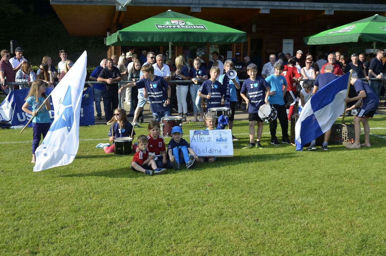 Um 16.15 Auer war du Showtime mam leschten Championnatsmatch an dëser Saison, an Iert den Ustouss war, haten déi 2 Equippen d’Éier fir vun der Harmonie Useldeng op den Terrain begleet ze ginn.