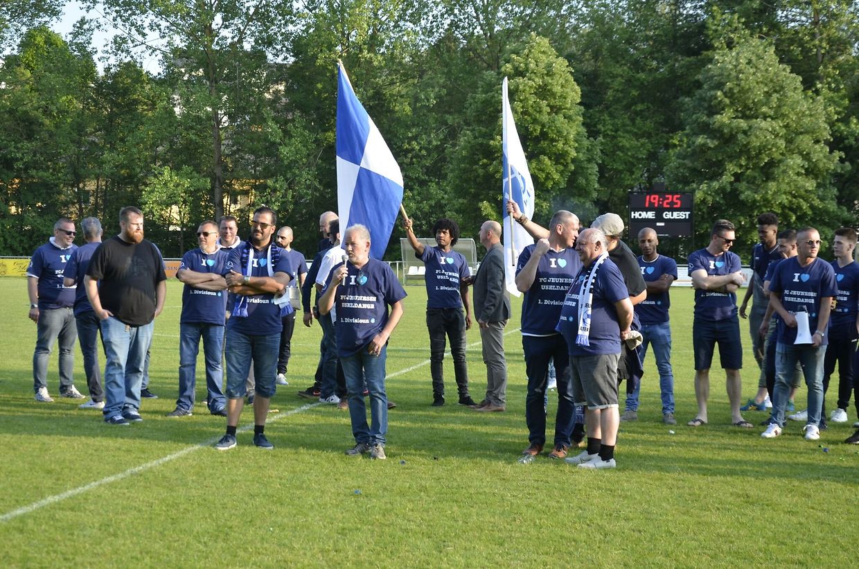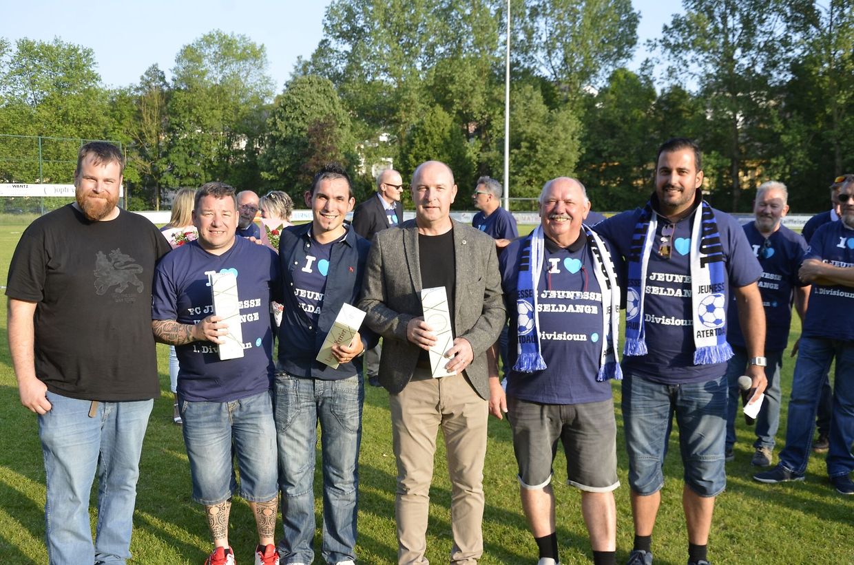 Nom Match géint 19.00 Auer war et dunn endlech souwäit, a mam offiziellen Deel vun der Feier konnt elo den Opstig an d’éischt Divisioun gefeiert ginn; dat ganzt encadréiert vum Syndicat d’Initative an der Gemeng Useldeng.