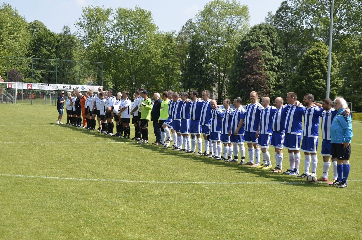 De Warm-Up vun dëser Opstigsfeier war en internationalen Match vun der Härenequipe vum F.C. Useldeng géint hier Football’s-Kollegen aus England: “Lad’s of the Village - Vet’s FC”, een Team aus der Ëmgéigend vu London.