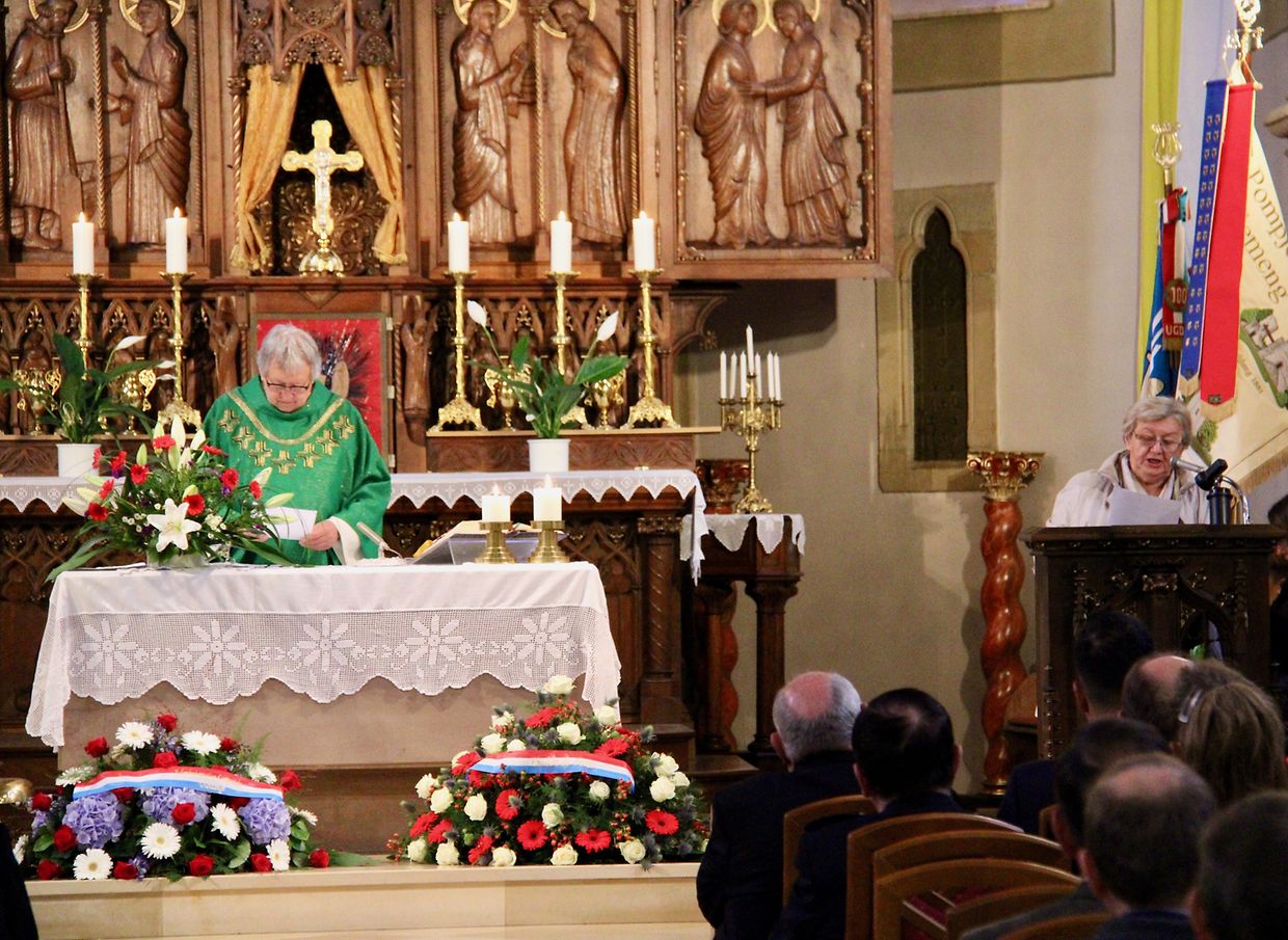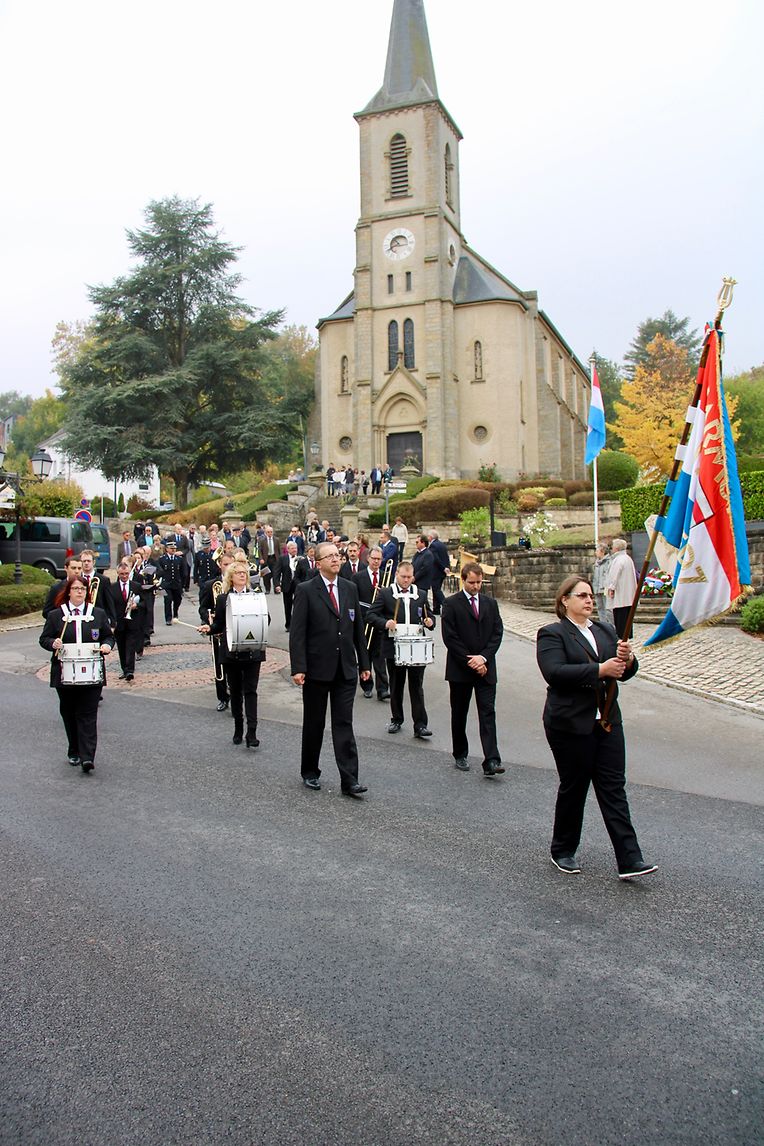 D’Harmonie Useldeng zesummen mat dem Pompjeescorps aus der Gemeng hunn de Cortège an d’Porkierch ugefouert, wou den Här Paschtouer Mathieu Janssen eng feierlech Gedenkmass gehalen huet. D’Mass gouf musikalesch ënnerluecht vun der Chorale an der Museksgesellschaftaus eiser Gemeng.