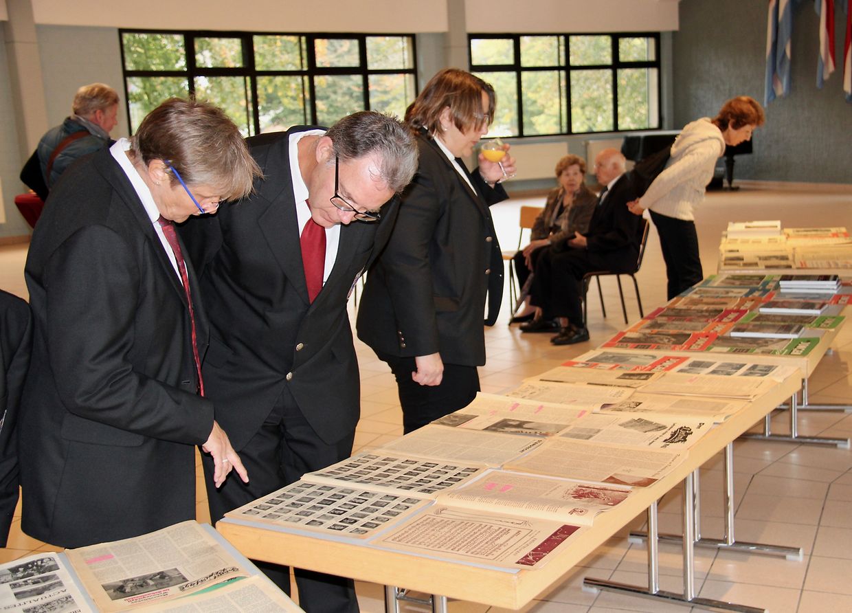 Als Ofschloss hat d’Gemeng op den Éierewäin an de Centre Culturel invitéiert. Hei huet d’Mme Lou Anzia (Vertrieder vum Comité du Souvenir) no enger Usproch d’Leit drop opmierksam gemaach, dat si fir dës Geleeënheet eng Ausstellung zesummegestallt huet, mat Zäitschrëften déi d’Ligue „Ons Jongen" no Krichsenn erausginn huet.