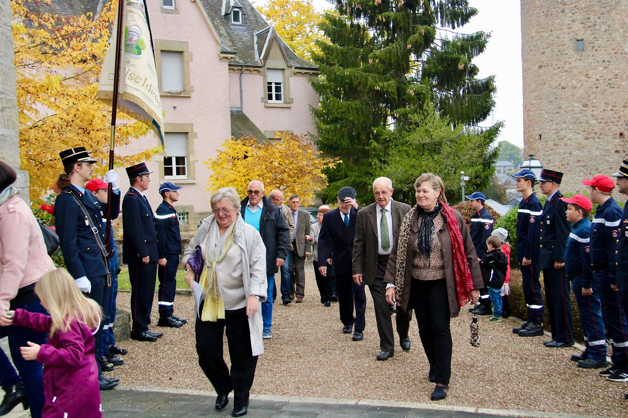 No der Mass war eng Gedenkzeremonie beim Monument aux Morts, wou Blummegerben niddergeluecht goufen. Wärend dem gouf d’Sonnerie aux Morts gespillt. Encadréiert war dës Zeremonie mat enger Ried vum Här Buergermeeschter Pollo Bodem.