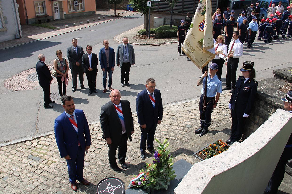 Den offizielle Festakt war no der Mass an dem Te Deum beim „Monument aux morts“, wou eng Gerb niddergeluecht gouf. D’Usprooch vum Buergermeeschter a d‘Medailleniwwerreechung goufen am Schlasshaff vun der Useldenger Buerg ofgehalen.