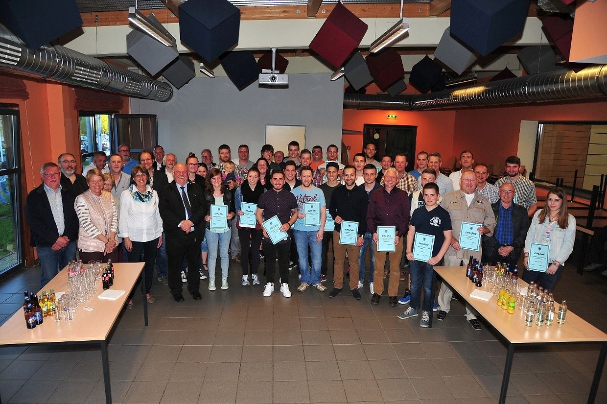 Useldingen:n Die alljährliche Sportlerehrung im Sportszentrum in Useldingen zeugte einmal mehr davon, welchen Stellenwert der Individuelle sowie auch der Mannschaftssport in der Gemeinde Useldingen einnehmen. Die Diplomüberreichung mit den als Ermutigung beigefügtem Einkaufsgutschein an die 42 Sportler fand vor kurzem im Rahmen einer kleinen Ehrung statt. Bürgermeister Pollo Bodem begrüßte die verschiedenen Vereine mit ihren Preisträgern und hob dabei dass die verdienstvollen Sportler ihre Vereine und damit auch die Gemeinde Useldingen auch würdig vertreten haben. Nicht nur der Spitzensport, sondern gerade der Vereinssport auf lokaler Ebene sowie die unermüdliche Vorstandsarbeit der lokalen Sport- und Jugendkommission verdienten Anerkennung. Darum werde die Gemeindeverwaltung auch in Zukunft den Sport unterstützen. Nach den Glückwünschen von Präsidentin Marielle Goedert wurden alsdann die Sportler des Tischtennisvereines aus Schandel geehrt die mit Chris Schroeder, Luc Schroeder, Milena Schroeder, Pol Hoffmann, Gil Kleer und Tom Kleer den Sprung von der dritten in die zweite Division schafften. Für die „ Indiaca Nethoppers“ erzielten gleich 14 Damen und die „ Equipe Mixte“ exzellente Resultate. Gleich 17 Spieler der ersten Fußballmannschaft wurden für ihren Aufstieg von der dritten in die zweite Division geehrt. Bei den Sportfischern wurde Lucien Flohr Vizemeister beim nationalen Fliegenfischen bei den Veteranen. Luca Denell wurde nationaler Meister in der Kategorie Jeunes U14.In der Leichtathletik wurde Romain Frank bei den Ergo Iron Kids Lasel- Meister beim Triathlon Cross. In der Segelfliegerei wurden die Piloten Daniel Zanitzer, Guy Bechthold und Arny Weber für ihre besonderen Flugleistungen bei nationalen sowie internationalen Rekorden ausgezeichnet. Guy Bechthold wurde seinerseits noch zu seiner Leistung im Segelflug auf langer Distanz beglückwünscht. (CR) (FOTO: CHARLES REISER)