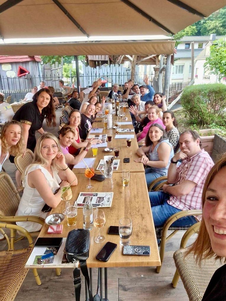 Nodeems den onbezuelbaren Engagement vum Gaby Heger am soziale a kulturelle Beräich déitlech vum Pol Petry erfirgestrach gouf, kruten d’Schüler hiren Zertifikat an d’Enseignante e Bouquet Blummen iwwerreecht.