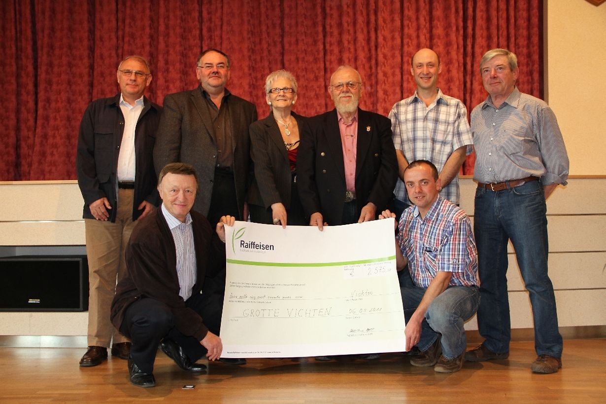 Viru kuerzem war zu Viichten am Festsall eng kleng Feier. D’Membere vum Comité Grott vu Viichten haten op eng Scheck-Iwwerreechung invitéiert. Den 1. Abrëll 2011 hunn de Marcel Zieser an d’Anny Michels hir gëlden Hochzäit gefeiert. Si haten no engem Don gefrot an déi Suen, déi si erakritt hu, goufe gespend fir d’Restauratioun vun der Viichter Grott. Et waren 2 575 € . D’Anni ass zënter iwwer 40 Joer am Comité Grott an hat huet sech nach ëmmer staark engagéiert fir d’Erhalen an d’Verschéinerung vun der Grott.