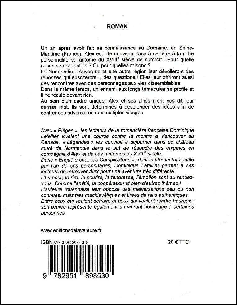 Les romans précédents de Dominique Letellier sont un hommage vibrant aux journalistes d’investigation. Ils invitent ses lecteurs à être les hôtes de charmants (?) fantômes du XVIIIe siècle bloqués dans un château en Normandie ou à vivre un thriller captivant à Vancouver, au Canada.