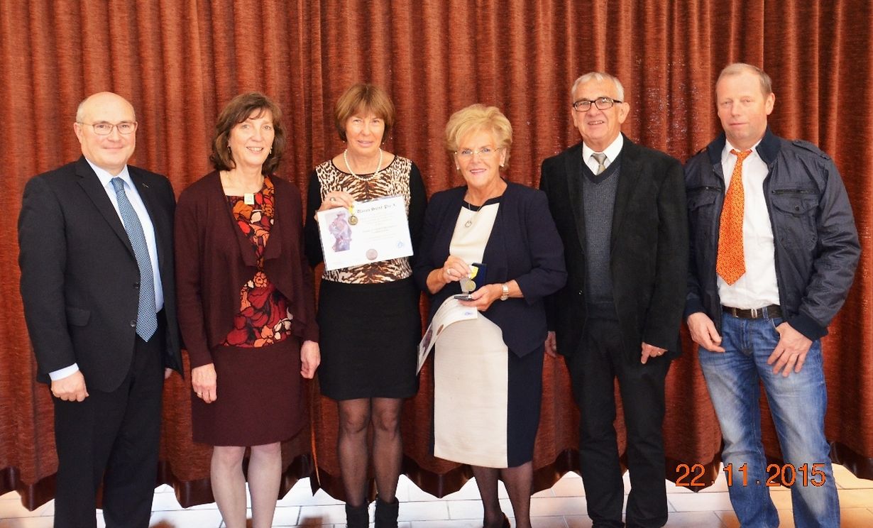 Der Verein lud am Sonntag zu einem gemeinsamen Mittagessen ein. Nach einer kurzen Ansprache durch den neuen Präsidenten Jos Turmes wurden die Damen Marie-Anne Faber-Kummer, Paulette Schmitz-Fischbach und Anne Haupert (nicht auf dem Foto) für 10-jährige Mitgliedschaft mit einer Bronze-Medaille des Piusverbandes geehrt. Ausserdem überreichte der Vorstand, wie kürzlich beschlossen, Geburtstagsgeschenke an 4 Damen und Herren von „80+“. Am Nachmittag wurden Bilder gezeigt vom diesjährigen Ausflug des Chors in die Normandie.