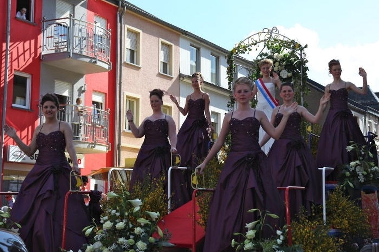 Den krönenden Abschluss des Ginsterkorsos bildete traditionsgemäß der prächtige, von der Wiltzer Musikgesellschaft geleitete Festwagen der Ginsterkönigin Valérie Fautsch, mit ihren Ehrendamen Katrin Ewen, Mandy Feller, Manon Hillenbrand, Liz Rickal, Jennifer Reisen und Emilie Lemaire zur Seite.