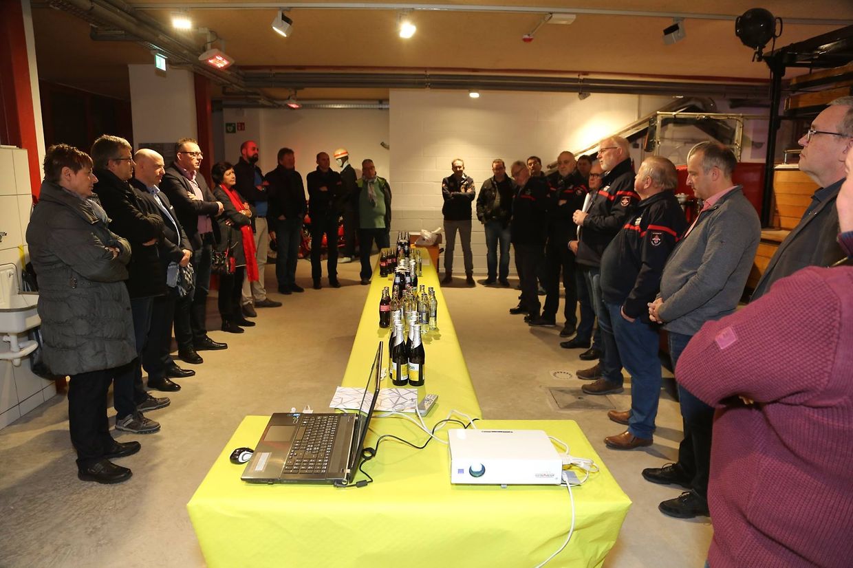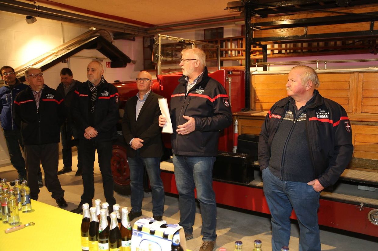 Niewend engem Historik vun der Planung bis elo, verbonnen mat engem groussen MERCI, dat war de Credo vum Owend. De Wierder vum Patrick Juncker huet de Präsident Marc Mamer sech ugeschloss an huet der klenger Equipe déi dësë Musée an Liewe rifft félicitéiert fir hiere Mut an Ausdauer fir, dass Geschicht vun der Pompjeeswelt kann demnächst do erzielt ginn. Och de Buergermeeschter Frank Arndt huet den Akteuren an den Sponsoren Merci gesot fir die Initiative déi hei un den Daag geluegt guff an huet och all Höllef vun der Gemeng ugebueden wa sie gebräicht giff ginn. Ofgeschloss guff dëss sympatisch Feier bei engem Patt an engem Maufel, iwerdeems jiddfereen sech un Hand vun enger Powerpointpräsentatioun sech iwert de Verlaaf vun den Aarbechten vun Ufank un iwerzege konnt.