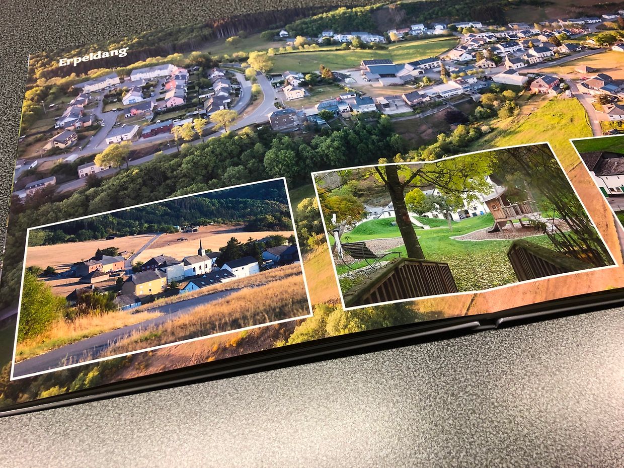Auf jeweils sechs bis zehn Seiten entdeckt man Selscheid, Knapphoscheid, Eschweiler, Erpeldingen, Weidingen, Roullingen und Wiltz. Ungewohnte Blickwinkel lassen sogar die Einheimischen grübeln, wo das Bild denn entstanden sein könnte. Mehrere doppelseitige Bilder im 28 x 28 cm großen Format lassen Landschaft und eingebettete Dörfer äußerst wirkungsvoll erscheinen. Immerhin hält der Betrachter Fotos von fast 60 cm Breite in der Hand.
