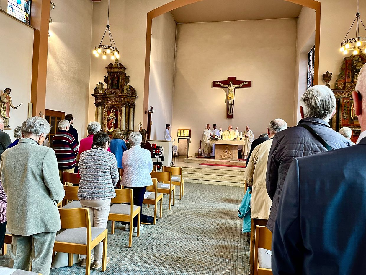 No der Prëssioun: Feierlech Pilgermass an der Kierch vu Wëlwerwoolz présidéiert vum Här Weibëschof Léo Wagener.
