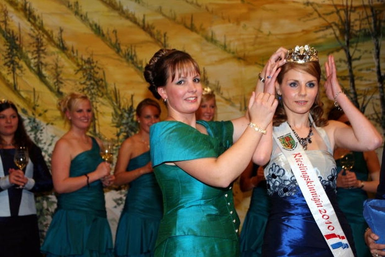 Ein Kompliment richtete sie an die Winzer der Rieslinggemeinde, die mit ihrer Arbeit für den bekömmlichen Wein verantwortlich zeichnen. Anschließend wurde Nachfolgerin Jil in einem festlichen Akt als neue Rieslingkönigin gekrönt. In ihrer Festrede versprach Jil, Tradition und Kultur des noblen Rieslings auch in Zukunft zu pflegen und diese wertvolle Weinsorte national und international würdig zu vertreten. Den Winzern wünschte sie eine ertragreiche Lese, nicht ohne sich bei allen an der Organisation des diesjährigen „Riesling Open“ Mitwirkenden zu bedanken. Nach der feierlichen Krönung fand im Kulturzentrum ein Ball mit den Sängern Sandy und Rol statt.