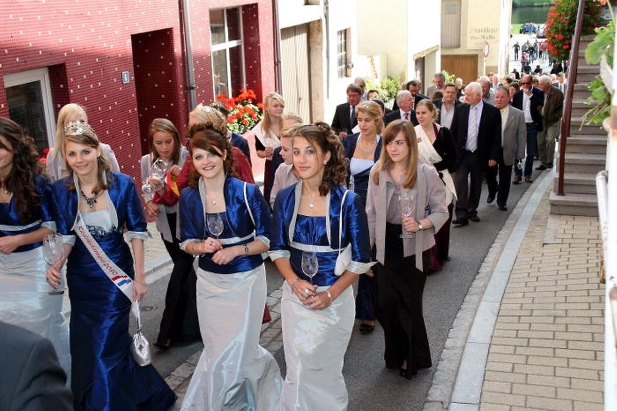 In seiner Eigenschaft als Präsident des Organisationsvorstands begrüßte Erny Demuth u. a. Agrar- und Weinbauminister Romain Schneider, den EU-Parlamentarier Georges Bach, die Abgeordneten Marie-Josée Frank, Carlo Wagner, Ben Scheuer und Henri Kox, die Vertreter der Gemeinden, des Weinbauinstituts, der Polizei, der Vinsmoselle, der privaten Winzer, des Festkomitees aus Grevenmacher, Weinkönigin Alexandra und die Weinköniginnen aus dem benachbarten Deutschland sowie die Vereine, bevor er auf die hervorragende Qualität des Riesling einging, einer Qualität, die nicht zuletzt dem Können der Winzer und einer perfekten Kellertechnik zu verdanken sei.