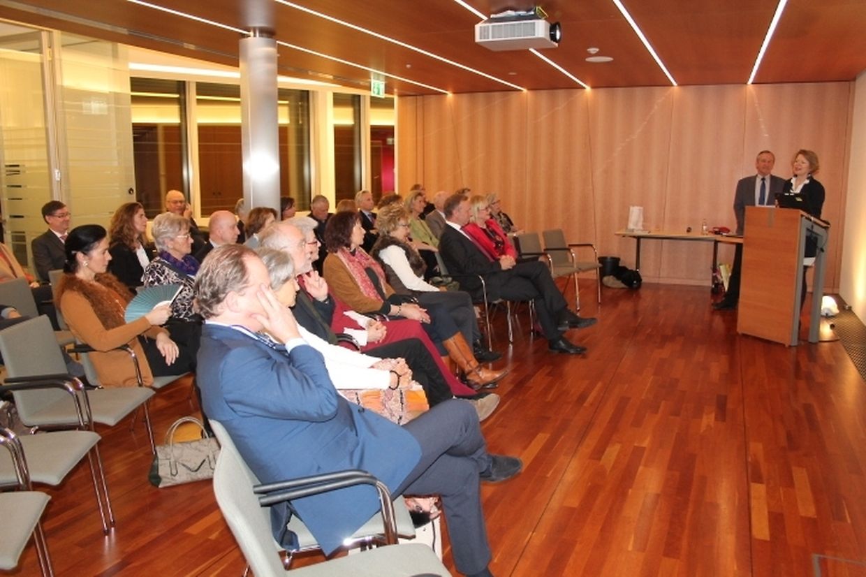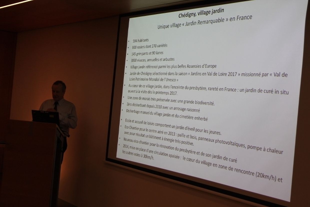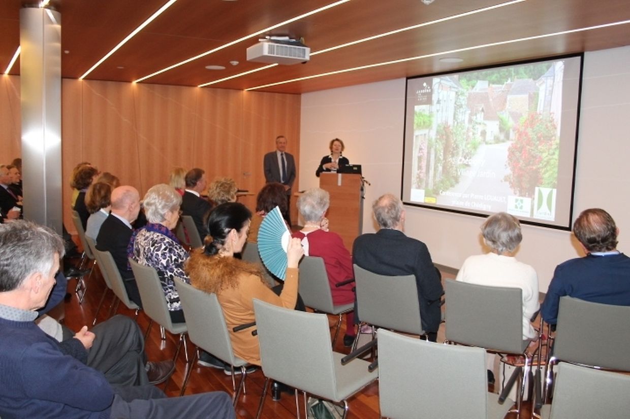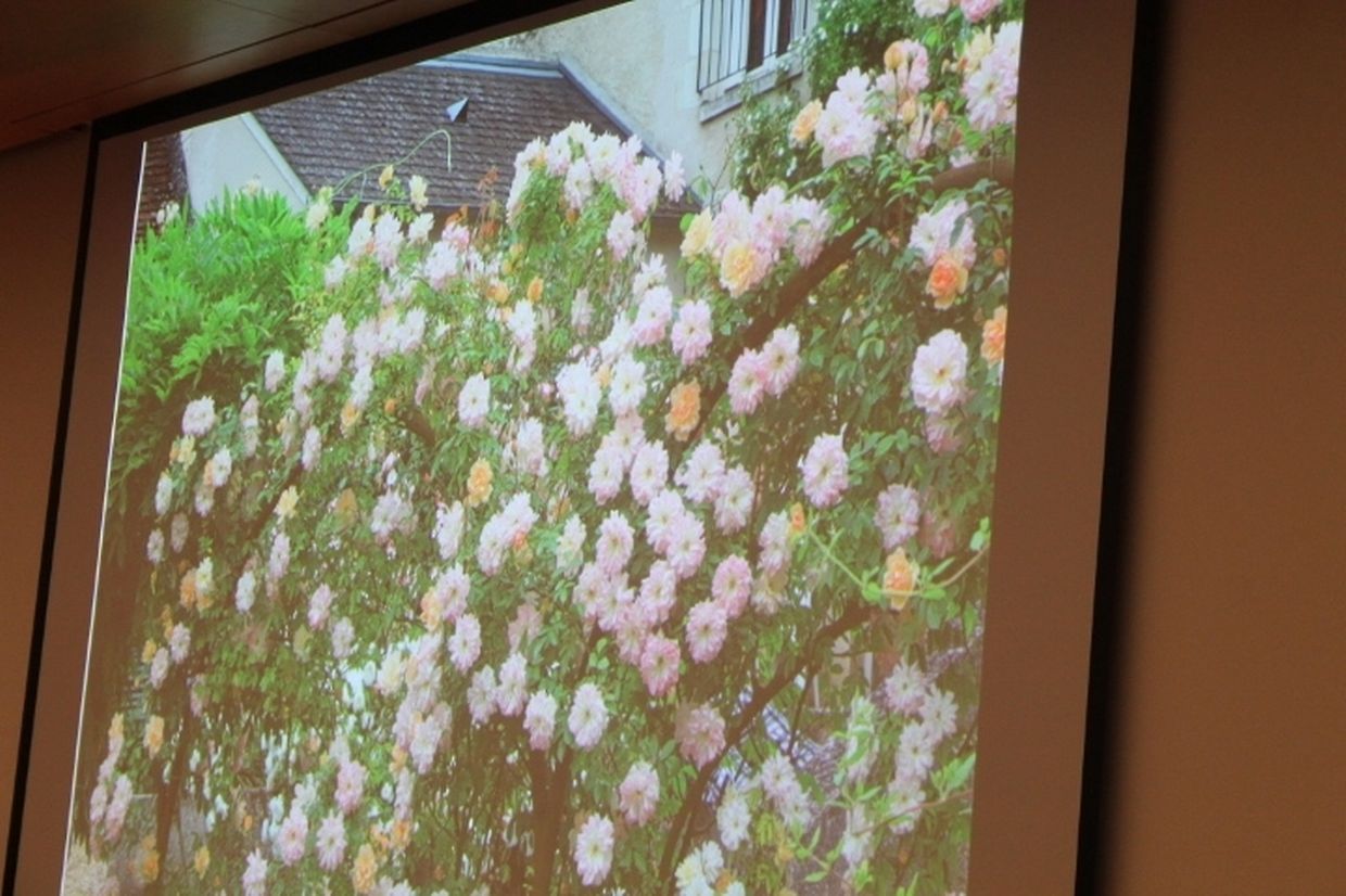 Lors de la Conférence –Dîner des Roses intitulée : « 800 rosiers pour 594 habitants : la révolution de Chédigny - Impact sociétal de rosiers grimpants dans un village de Touraine » du 13 février à la Banque de Luxembourg,