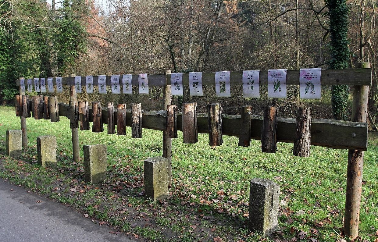 Op enger Tafel kann een liesen wat vir een Steen et ass, an wat domat an der Zaït gemat ginn ass. Dann sinn ech zréck hannen laanscht der Villa komm, ëmmer
