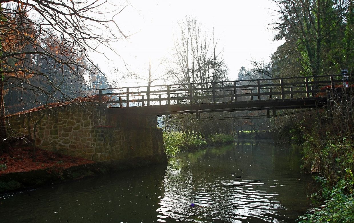 Vir eescht kommen ech an den Gronn, bekannt Bréck am Gronn, e belieft Photomotiv, also wat ass mer iwwreg bliwwen , hunn natierlech eng Photo gemat.Dann weider zu Fouss Richtung Polfermillen, wou awer net vill ze kucken ass. Dann no e puer Kilometer laanscht déi al Kofferfabrik, wou fréier eng Géisserei war, haut e Service vun der Gemeng dran ass