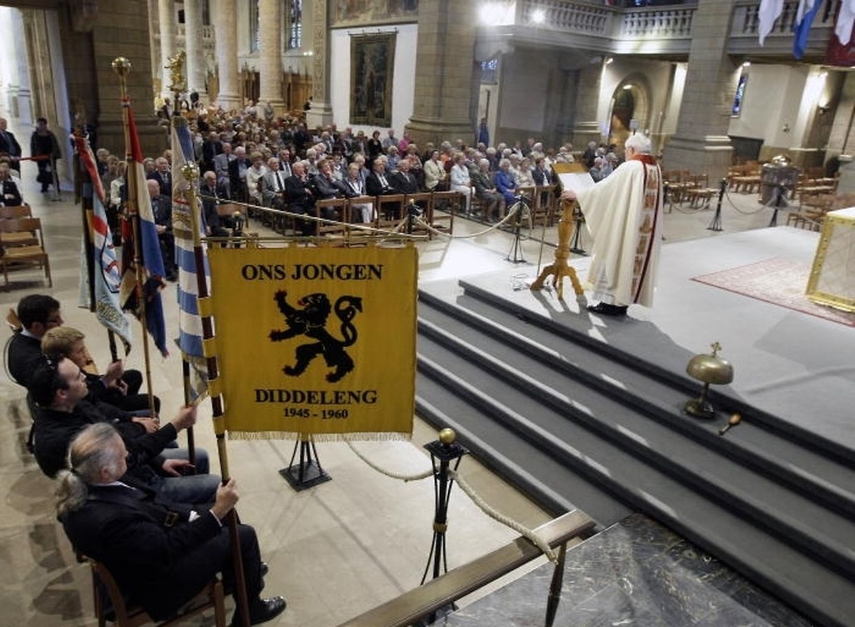 In seiner Predigt ging Dompropst André Heiderscheid auf den 8. Mai 1945 ein. Mit diesem Datum sei der Krieg für viele Kameraden noch nicht vorbei gewesen. Nach der deutschen Barbarei, dem Zwang und der Hölle an den Fronten hätten sich Hunger, Heimweh, Krankheit und Sterben, und mit ihnen, das Leid in den Gefangenenlagern eingestellt. André Heiderscheid erinnerte an die zahlreichen Kameraden und Freunde, darunter auch 58 luxemburgische Mädchen, die aus dem RAD und Kriegshilfsdienst nicht mehr nach Hause kamen. Ebenso seien die Heldentaten der Helfer, die für die Zwangsrekrutierten ihr Leben riskiert und gelitten haben sowie des Öfteren auch gestorben sind, nicht vergessen. Das Leben von weit über 3 000 jungen Luxemburgern sei durch ihren selbstlosen Einsatz gerettet worden. Ihnen allen gebühre ein großes „Vergelt's Gott.“