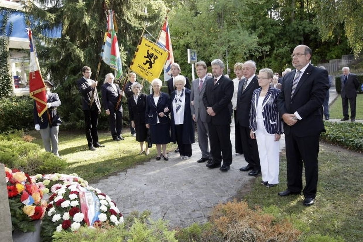 Im Anschluss an den feierlichen Gedenkgottesdienst legten die Zwangsrekrutierten und die „Tambower“ am nationalen Monument der Solidarität auf dem „Kanounenhiwwel“ ein Blumengebinde nieder.