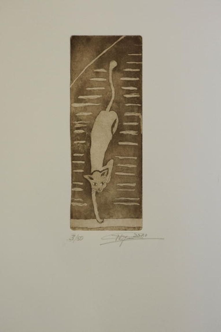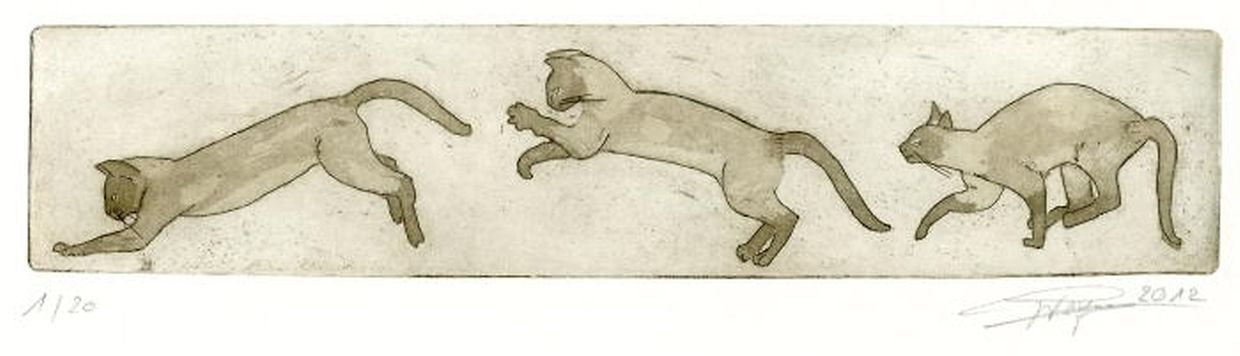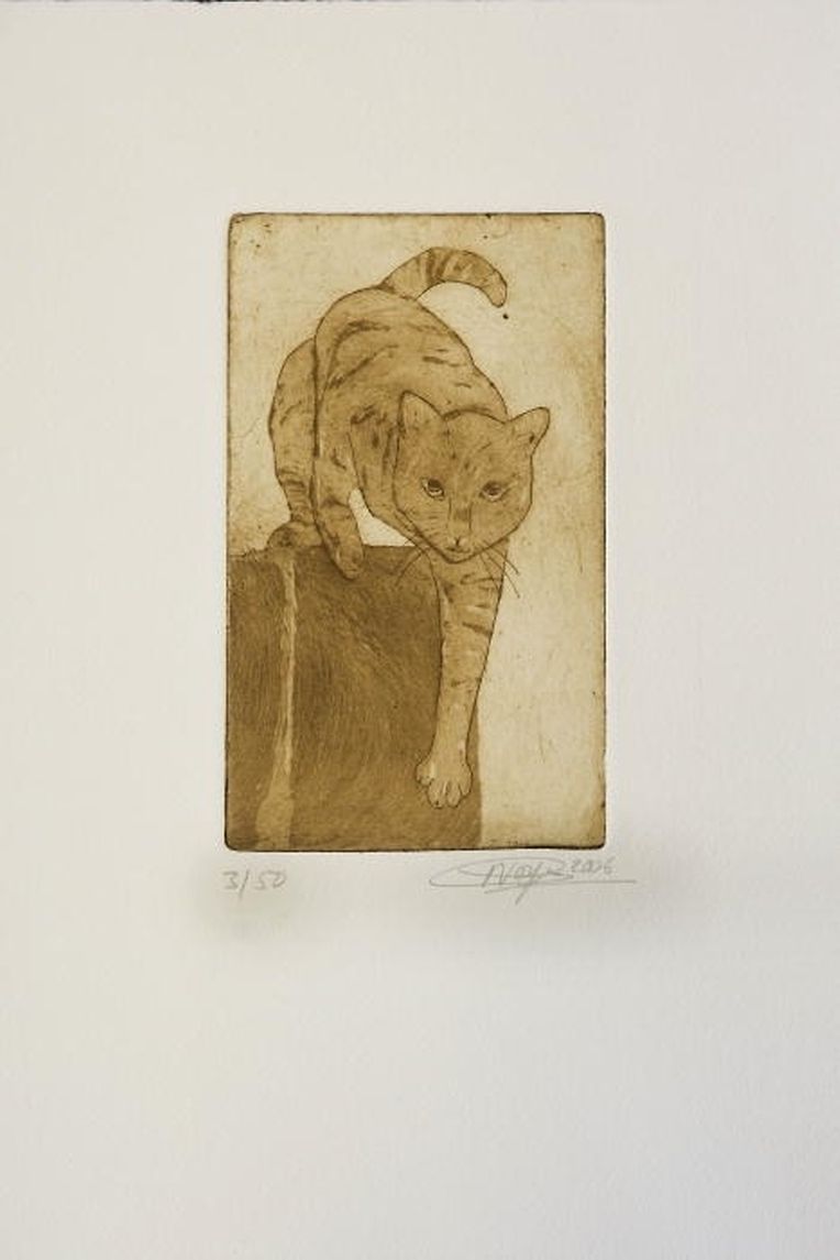 Catherine Noyer, journaliste et artiste, est animée par la fascination pour les chats et la passion de la gravure. De la coalition de cette passion et de son savoir-faire est né un bestiaire finement ciselé, qui à l'enseigne «Cats II» est actuellement exposé à la galerie Artium.